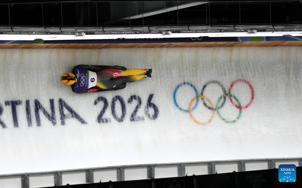 CORTINA D'AMPEZZO, 15 febrero, 2026 (Xinhua) -- Imagen del 14 de febrero de 2026 de Jacqueline Pfeifer, de Alemania, compitiendo durante la serie de skeleton femenino en los Juegos Olímpicos de Invierno Milán-Cortina 2026, en Cortina, Italia. (Xinhua/Li Gang)