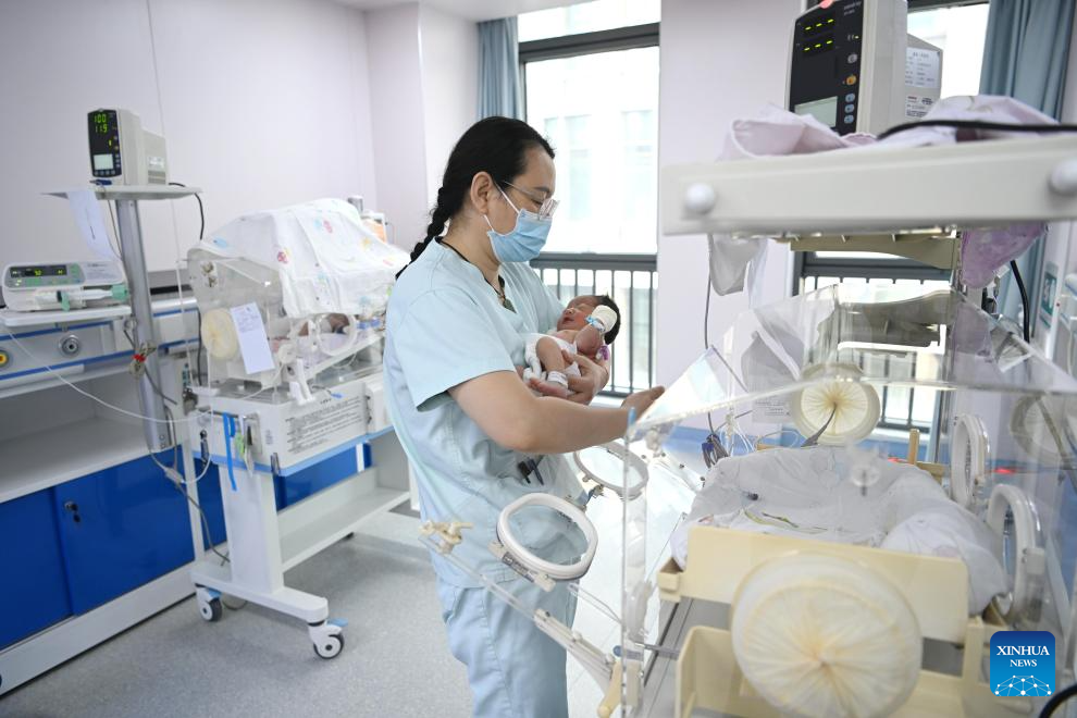 SHIJIAZHUANG, 16 febrero, 2026 (Xinhua) -- Un recién nacido es cuidado por una enfermera en el departamento de neonatología del Hospital Central No. 4 de Baoding, en la ciudad de Baoding, en la provincia de Hebei, en el norte de China, el 16 de febrero de 2026. Cinco trabajadores médicos permanecen de guardia aquí el lunes, víspera del Año Nuevo chino, para brindar cuidados esenciales a los recién nacidos en los primeros días después de su nacimiento. (Xinhua/Zhu Xudong)