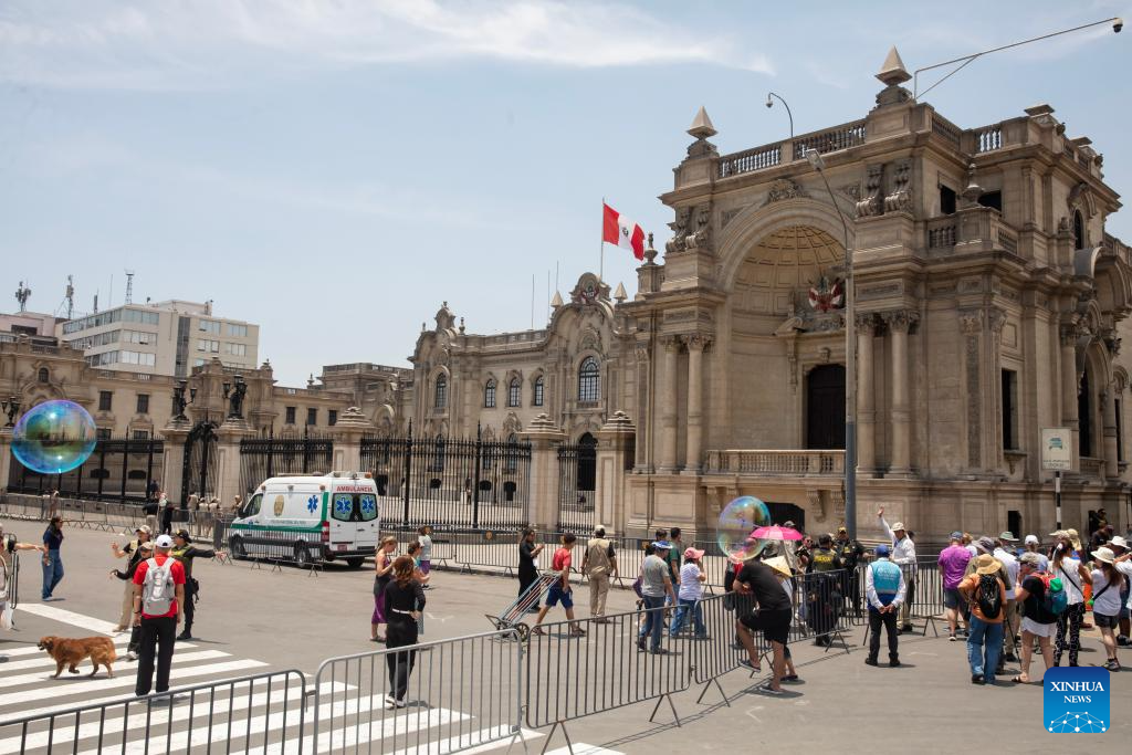 Personas asisten a la ceremonia de cambio de guardia en el Palacio de Gobierno, en Lima, Perú, el 17 de febrero de 2026. El Congreso de Perú aprobó el martes, con 75 votos a favor y 24 en contra, las siete mociones de censura presentadas por varias bancadas contra el presidente José Jerí, por lo que deberá abandonar el cargo de manera inmediata. (Xinhua/Mariana Bazo)