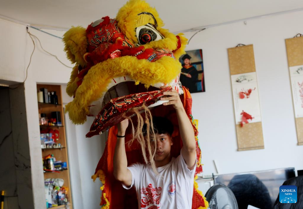 LIMA, 17 febrero, 2026 (Xinhua) -- Imagen del 9 de febrero de 2026 de Gonzalo Zhou, un joven peruano de 17 años de edad, hijo de padre chino y madre peruana con raíces chinas, preparándose para ensayar la danza del león en su casa, en Lima, Perú. La Fiesta de la Primavera es, para muchas personas en Perú, una celebración que se expresa a través del movimiento, el sonido de los tambores y la reunión colectiva, donde la danza del dragón, el león y la cena que reúne a las familias se convierten en un lenguaje que transmite buenos deseos, memoria y renovación. (Xinhua/Mariana Bazo)