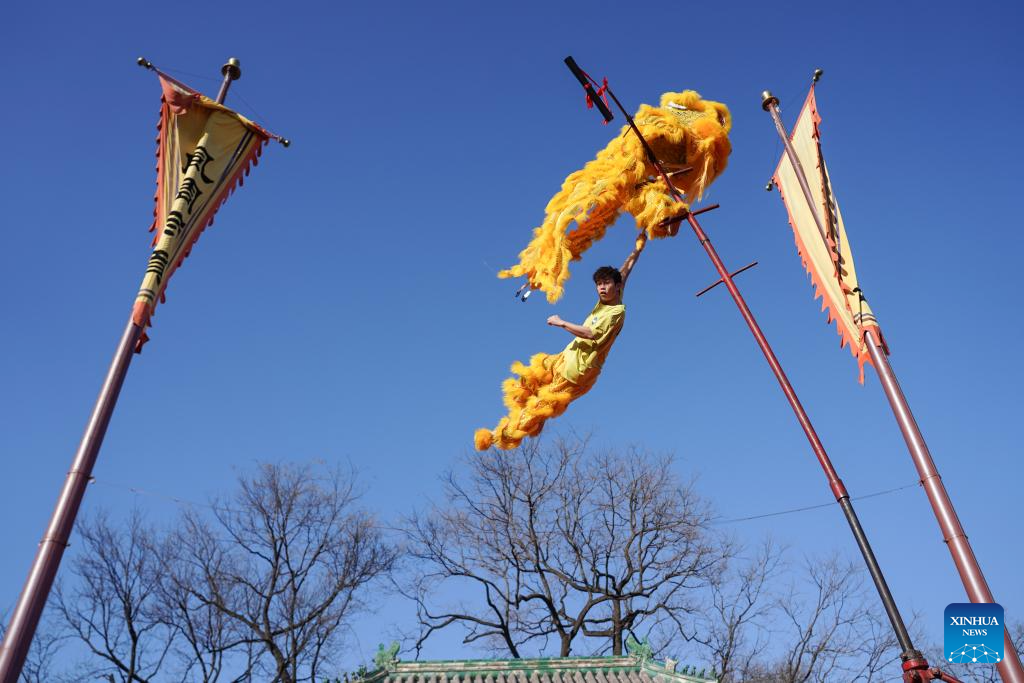 BEIJING, 17 febrero, 2026 (Xinhua) -- Artistas realizan una presentación en una feria de templo, en Beijing, capital de China, el 17 de febrero de 2026. Las ferias de templo se inauguraron aquí para celebrar la Fiesta de la Primavera y ofrecer a los visitantes bailes tradicionales, danzas del león y deliciosa comida. (Xinhua/Liang Zhiqiang)