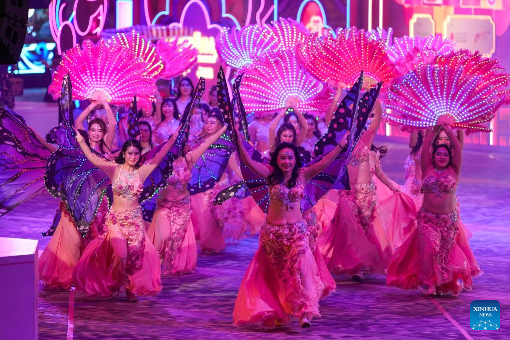 HONG KONG, 18 febrero, 2026 (Xinhua) -- Imagen del 17 de febrero de 2026 de artistas asistiendo a un desfile internacional nocturno para festejar el Año del Caballo, en Hong Kong, en el sur de China. Un desfile internacional nocturno para festejar el Año del Caballo se celebró en Hong Kong el martes por la noche, dando inicio a una serie de programas festivos destacados por el Año Nuevo chino. (Xinhua/Zhu Wei)