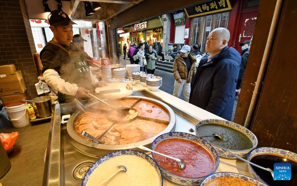 BEIJING, 18 febrero, 2026 (Xinhua) -- Un turista espera para degustar especialidades locales, en Beijing, capital de China, el 18 de febrero de 2026. Durante las vacaciones de la Fiesta de la Primavera, la comida tradicional del Año Nuevo Chino y las cocinas de moda se han convertido en un elemento destacado del consumo vacacional de las personas. (Xinhua/Li Xin)
