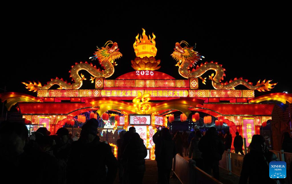 BEIJING, 19 febrero, 2026 (Xinhua) -- Imagen del 17 de febrero de 2026 de turistas visitando una feria de linternas, en Beijing, capital de China. Durante la Fiesta de la Primavera, las decoraciones de linternas a través del país crearon un alegre ambiente para la celebración. (Xinhua/Liang Zhiqiang)
