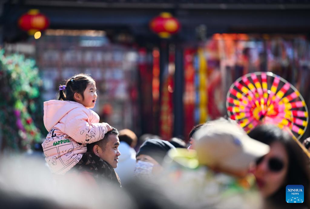TIANJIN, 22 febrero, 2026 (Xinhua) -- Visitantes se divierten, en el poblado antiguo de Yangliuqing, en Tianjin, en el norte de China, el 22 de febrero de 2026. El poblado antiguo de Yangliuqing lanzó una serie de actividades que presentan costumbres populares, cultura tradicional y experiencias interactivas, ofreciendo a los visitantes una fiesta popular inmersiva durante estas vacaciones de la Fiesta de la Primavera. (Xinhua/Zhao Zishuo)