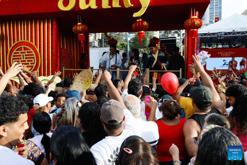 CIUDAD DE PANAMA, 23 febrero, 2026 (Xinhua) -- Imagen del 22 de febrero de 2026 de personas asistiendo a una celebración del Año Nuevo chino, en la Ciudad de Panamá, capital de Panamá. (Xinhua/Daniel González)