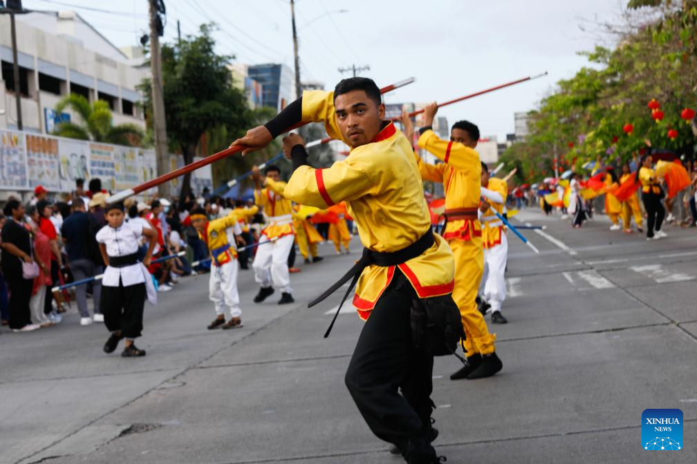 CIUDAD DE PANAMA, 23 febrero, 2026 (Xinhua) -- Imagen del 22 de febrero de 2026 de artistas marciales realizando una presentación durante una celebración del Año Nuevo chino, en la Ciudad de Panamá, capital de Panamá. (Xinhua/Daniel González)