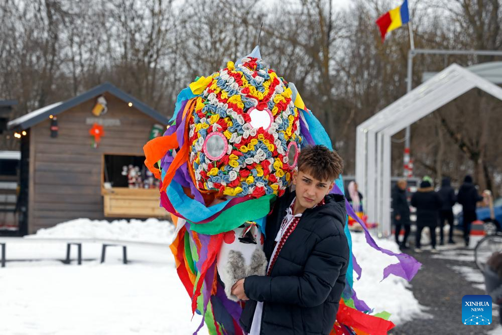 BRANESTI, 23 febrero, 2026 (Xinhua) -- Una persona enmascarada participa en el festival anual "Día del Cuco" (Ziua Cucilor), en Branesti, cerca de Bucarest, capital de Rumania, el 23 de febrero de 2026. Grupos de personas enmascaradas participaron en el festival tradicional, cantando y bailando por la buena salud y la fertilidad al comienzo de la primavera. (Xinhua/Cristian Cristel)