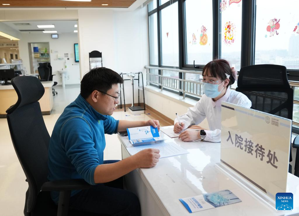 SHANGHAI, 27 febrero, 2026 (Xinhua) -- Imagen del 26 de febrero de 2026 de una enfermera (d) explicando los servicios de atención "sin acompañante" a un familiar de un paciente internado en un hospital, en Shanghai, en el este de China. Los hospitales chinos están poniendo a prueba servicios de atención "sin acompañante" para aliviar la pesada carga que supone el cuidado diario de los pacientes hospitalizados para sus familias. (Xinhua/Liu Ying)