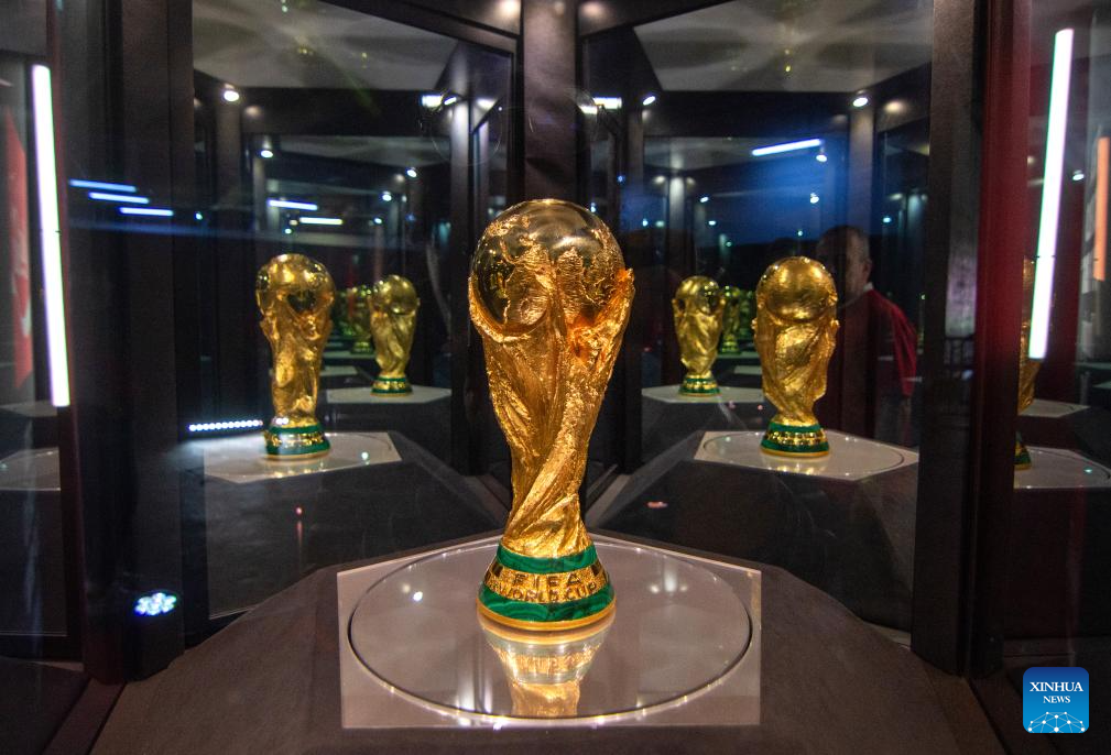 JALISCO, 28 febrero, 2026 (Xinhua) -- Imagen del 28 de febrero de 2026 del trofeo exhibido durante el inicio del Tour del Trofeo de la Copa Mundial de la Federación Internacional de Fútbol Asociación (FIFA), en Zapopan, en la zona metropolitana de Guadalajara, estado de Jalisco, México. La sexta edición del Tour del Trofeo de la Copa Mundial de la FIFA inició el sábado su recorrido por territorio mexicano en la ciudad de Guadalajara, con la finalidad de acercar a los aficionados al galardón más codiciado del balompié en la antesala del Mundial 2026 que acogerán de manera conjunta México, Estados Unidos y Canadá. (Xinhua/Miriam Jiménez)