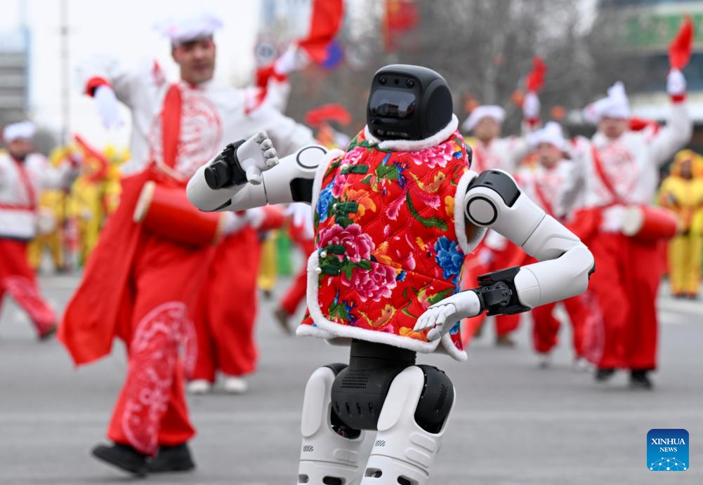 BEIJING, 3 marzo, 2026 (Xinhua) -- Un robot humanoide baila durante la gala Shehuo en celebración del Festival de las Linternas, en la ciudad de Changji, en la región autónoma de la etnia uygur de Xinjiang, en el noroeste de China, el 3 de marzo de 2026. En toda China se llevaron a cabo una variedad de actividades vibrantes para celebrar el Festival de las Linternas, que cae el decimoquinto día del primer mes del calendario lunar chino, o el 3 de marzo de este año. (Xinhua/Wang Fei)