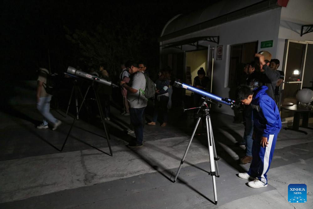 SAN SALVADOR, 3 marzo, 2026 (Xinhua) -- Personas observan con telescopios la luna llena durante un eclipse total de luna en el Observatorio Micro Macro, en el departamento de San Salvador, capital de El Salvador, el 3 de marzo de 2026. (Xinhua/Alexander Peña)