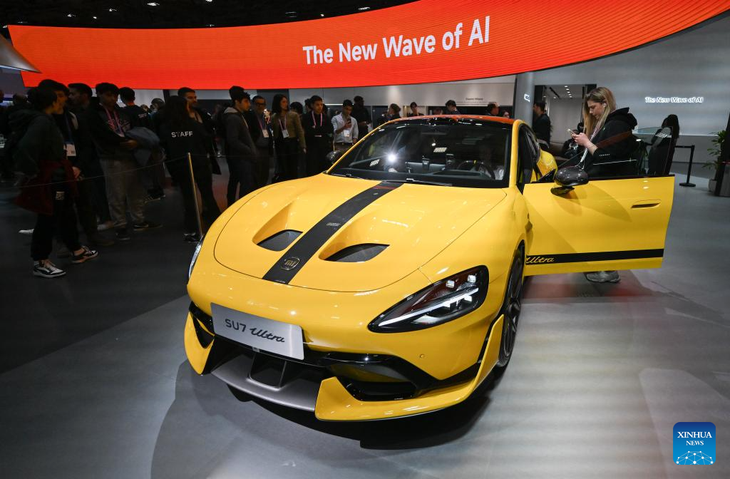 BARCELONA, 5 marzo, 2026 (Xinhua) -- Personas observan un vehículo exhibido en el estand de Xiaomi durante el Congreso Mundial de Móviles (MWC, por sus siglas en inglés) 2026, en Barcelona, España, el 5 de marzo de 2026. El MWC 2026 concluyó aquí el jueves. (Xinhua/Cheng Min)