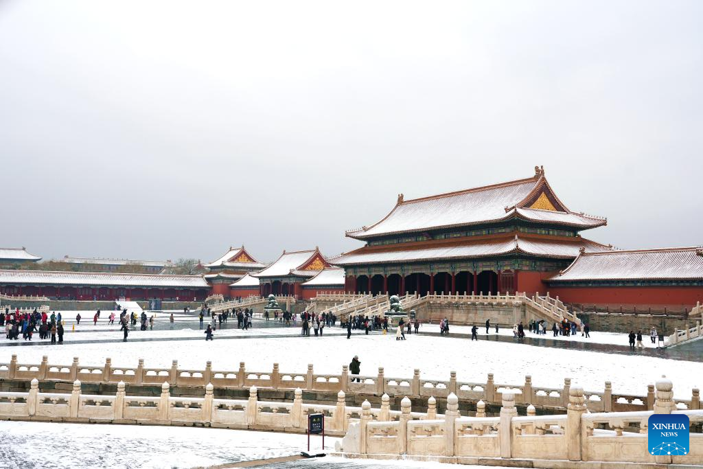 BEIJING, 5 marzo, 2026 (Xinhua) -- Turistas visitan el Museo del Palacio luego de una nevada, en Beijing, capital de China, el 5 de marzo de 2026. Beijing fue testigo de una nevada primaveral del miércoles al jueves. (Xinhua/Ma Xiaodong)