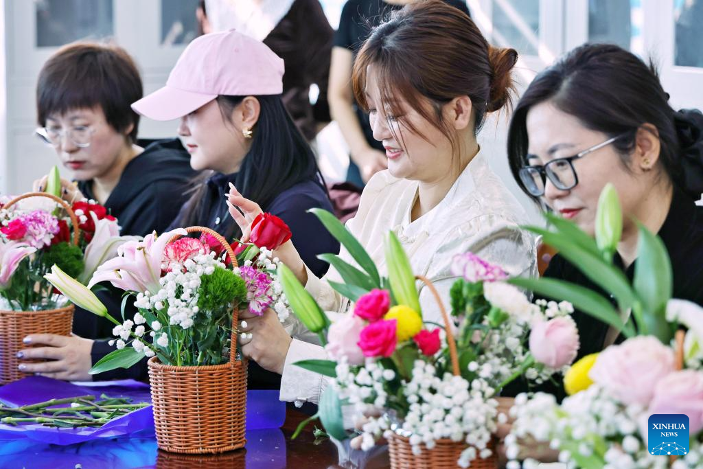 BEIJING, 7 marzo, 2026 (Xinhua) -- Imagen del 5 de marzo de 2026 de mujeres aprendiendo a elaborar arreglos de flores en un evento para celebrar el Día Internacional de la Mujer, en la ciudad de Mengzi, en la provincia de Yunan, en el suroeste de China. Diversos eventos se llevaron a cabo recientemente en China para conmemorar el Día Internacional de la Mujer. (Xinhua/Xue Yingying)