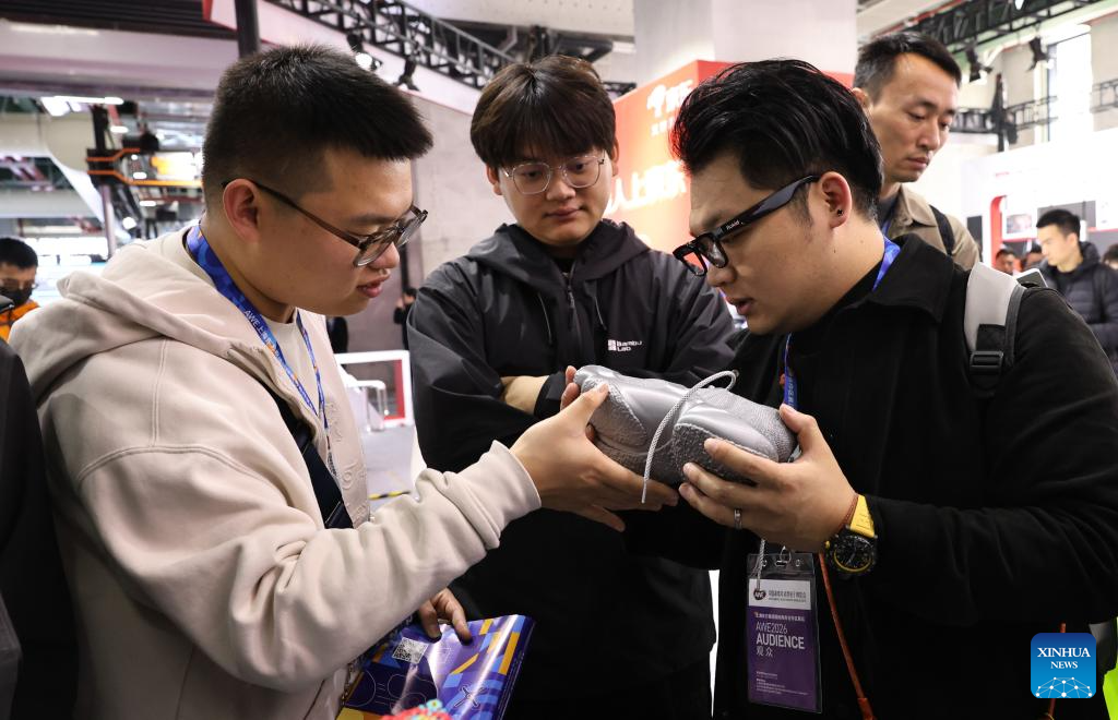 SHANGHAI, 12 marzo, 2026 (Xinhua) -- Visitantes observan un zapato impreso en 3D durante la Exposición Mundial de Electrodomésticos y Electrónica 2026 (AWE2026, por sus siglas en inglés), en Shanghai, en el este de China, el 12 de marzo de 2026. La AWE2026 comenzó en Shanghai el jueves. Más de 1.200 empresas de todo el mundo se reunieron en la exposición para presentar sus últimas innovaciones. (Xinhua/Fang Zhe)