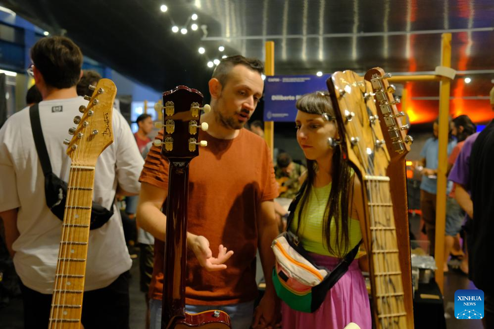 BUENOS AIRES, 15 marzo, 2026 (Xinhua) -- Imagen del 14 de marzo de 2026 de visitantes observando instrumentos musicales exhibidos durante una feria de instrumentos musicales celebrada en el Palacio Libertad, en Buenos Aires, Argentina. (Xinhua/Zhang Duo)