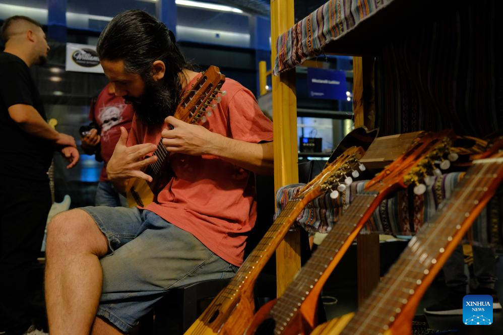 BUENOS AIRES, 15 marzo, 2026 (Xinhua) -- Imagen del 14 de marzo de 2026 de un artesano probando un instrumento musical durante una feria de instrumentos musicales celebrada en el Palacio Libertad, en Buenos Aires, Argentina. (Xinhua/Zhang Duo)