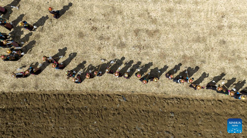 SHANNAN, 16 marzo, 2026 (Xinhua) -- Vista aérea tomada con un dron el 16 de marzo de 2026 de aldeanos participando en una ceremonia para conmemorar el inicio de la agricultura de primavera, en la aldea de Gaiba, en la ciudad de Shannan, en la región autónoma de Xizang, en el suroeste de China. Ceremonias para conmemorar el inicio de la agricultura de primavera se han celebrado en Xizang el lunes. (Xinhua/Jigme Dorje)