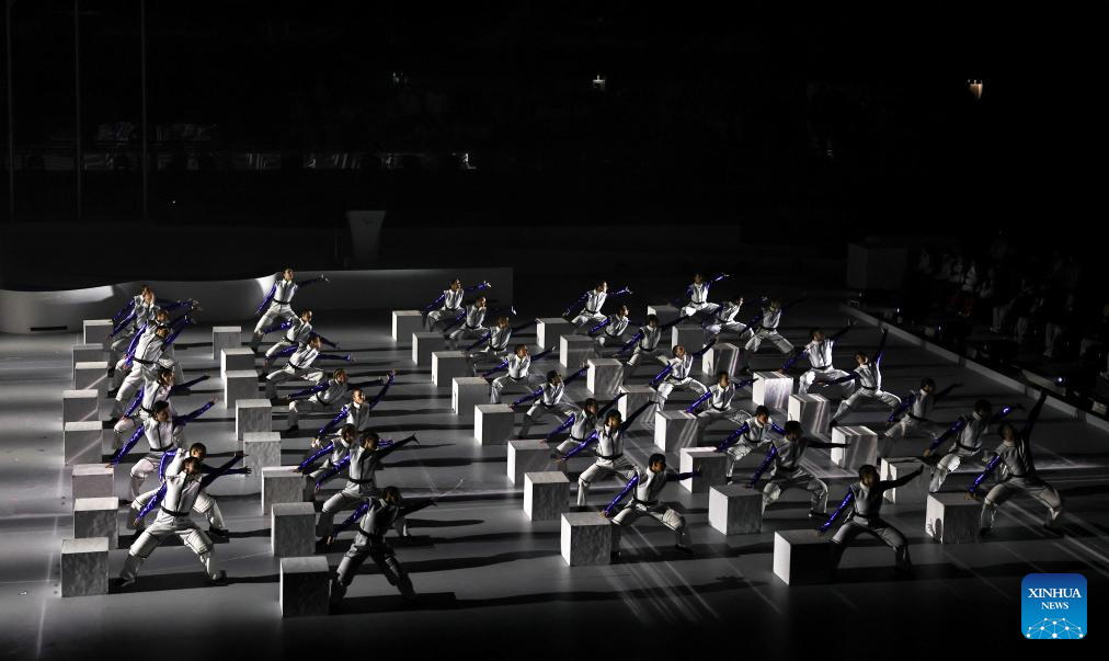CORTINA D'AMPEZZO, 16 marzo, 2026 (Xinhua) -- Imagen del 15 de marzo de 2026 de un artista realizando una presentación durante la ceremonia de clausura de los Juegos Paralímpicos de Invierno Milán-Cortina 2026, en Cortina D'ampezzo, Italia. (Xinhua/Wang Kaiyan)