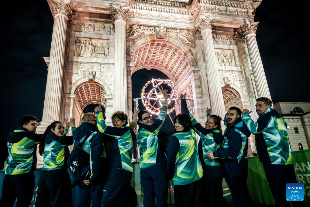 MILAN, 16 marzo, 2026 (Xinhua) -- Imagen del 15 de marzo de 2026 de voluntarios posando para una fotografía frente al Arco della Pace, previo a que se apagara el pebetero en Milán, Italia. La ceremonia de clausura de los Juegos Paralímpicos de Invierno Milán-Cortina 2026 se llevó a cabo en Cortina D'ampezzo, Italia, el domingo. (Xinhua)