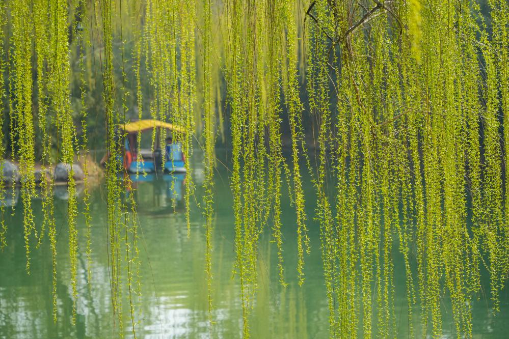 Paisaje primaveral del lago Daming atrae a turistas