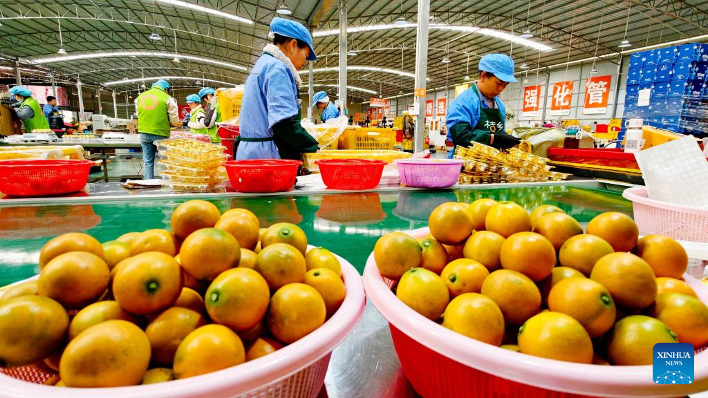 NANNING, 18 marzo, 2026 (Xinhua) -- Imagen del 30 de noviembre de 2025 de trabajadores laborando en la línea de producción de una empresa procesadora de kumquat, en el distrito de Rong'an, en la ciudad de Liuzhou, en la región autónoma de la etnia zhuang de Guangxi, en el sur de China. Los kumquats del distrito de Rong'an, en la región autónoma de la etnia zhuang de Guangxi, en el sur de China, se han convertido recientemente en un fenómeno en las redes sociales. Conocido como "jinju", que significa naranja dorada en chino, este pequeño cítrico de forma ovalada ha sorprendido a consumidores desde Yakarta hasta Toronto. (Xinhua/Tan Kaixing)