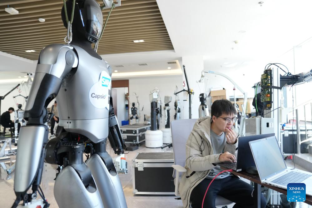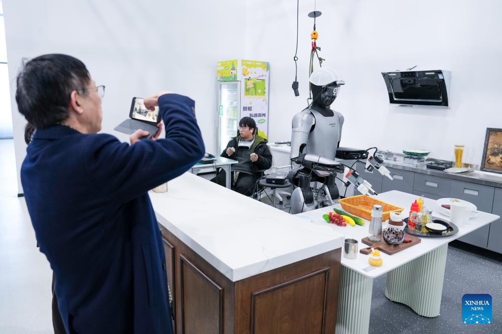NANJING, 19 marzo, 2026 (Xinhua) -- Imagen del 10 de marzo de 2026 de personas observando un robot humanoide entrenándose en diversos escenarios de entrenamiento en el Centro de Innovación de Robótica e Inteligencia Artificial Incorporada de Suzhou, en Suzhou, en la provincia de Jiangsu, en el este de China. En los últimos años, la provincia de Jiangsu, en el este de China, ha priorizado la robótica incorporada como una industria clave para el futuro. (Xinhua/Li Bo)