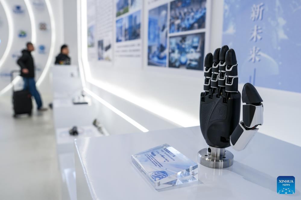 NANJING, 19 marzo, 2026 (Xinhua) -- Imagen del 10 de marzo de 2026 de una mano biónica exhibida en el Centro de Innovación de Robótica e Inteligencia Artificial Incorporada de Suzhou, en Suzhou, en la provincia de Jiangsu, en el este de China. En los últimos años, la provincia de Jiangsu, en el este de China, ha priorizado la robótica incorporada como una industria clave para el futuro. (Xinhua/Li Bo)