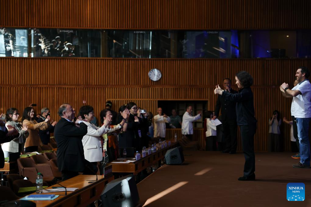 PARIS, 19 marzo, 2026 (Xinhua) -- Imagen del 18 de marzo de 2026 de Zhang Yuping, secretaria general de la Federación Internacional de Wushu, saludando al público durante el evento de celebración, en París, Francia. Una celebración previa al primer Día Internacional del Taijiquan, que se celebrará el 21 de marzo, se llevó a cabo el miércoles en la sede de la Organización de las Naciones Unidas para la Educación, la Ciencia y la Cultura (UNESCO, por sus siglas en inglés) en París, bajo el lema "En forma para la vida, Ve por el taiji". (Xinhua/Wu Huiwo)