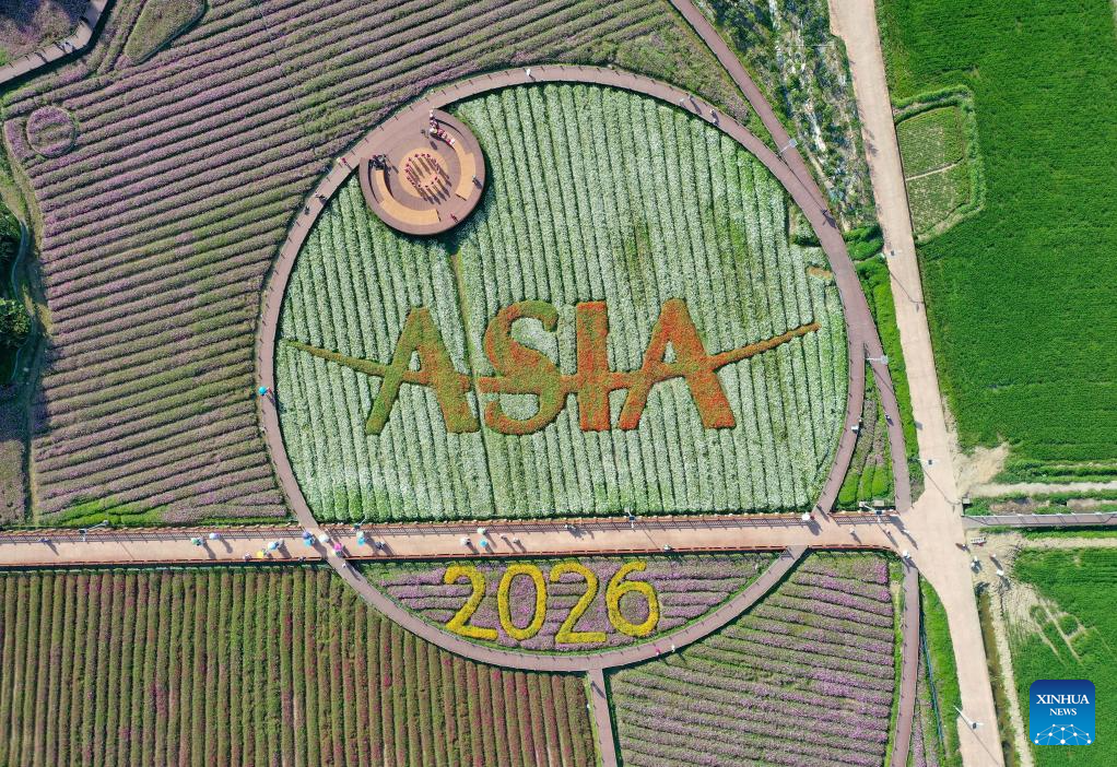 QIONGHAI, 20 marzo, 2026 (Xinhua) -- Vista aérea tomada con un dron el 17 de marzo de 2026 de campos de flores, en la aldea de Nanqiang en el poblado de Boao, en la ciudad de Qionghai, en la provincia de Hainan, en el sur de China. El Foro de Boao para Asia ha estado impulsando el desarrollo general de la ciudad durante 25 años desde su creación en 2001. (Xinhua/Guo Cheng)