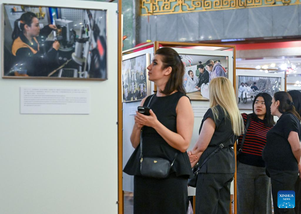 MOSCU, 21 marzo, 2026 (Xinhua) -- Imagen del 20 de marzo de 2026 de una visitante observando una fotografía durante una exposición fotográfica que destaca los logros del desarrollo de las mujeres en China, en Moscú, Rusia. Una exposición fotográfica que destaca los logros del desarrollo de las mujeres en China se inauguró en Moscú el viernes, atrayendo a más de 800 espectadores de los círculos político, académico, mediático y empresarial de China y Rusia. La exposición presenta alrededor de 40 fotografías seleccionadas que muestran los avances de las causas de las mujeres chinas y los resultados de los intercambios y la cooperación entre China y Rusia en este ámbito. (Xinhua/Hao Jianwei)