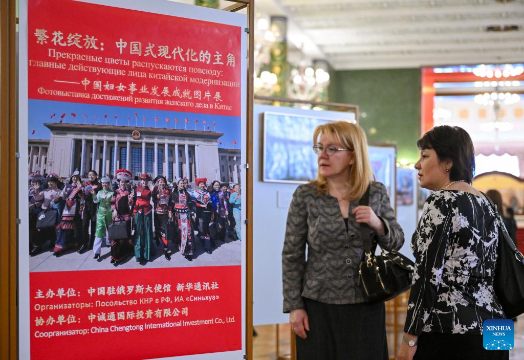 MOSCU, 21 marzo, 2026 (Xinhua) -- Imagen del 20 de marzo de 2026 de visitantes observando fotografías durante una exposición fotográfica que destaca los logros del desarrollo de las mujeres en China, en Moscú, Rusia. Una exposición fotográfica que destaca los logros del desarrollo de las mujeres en China se inauguró en Moscú el viernes, atrayendo a más de 800 espectadores de los círculos político, académico, mediático y empresarial de China y Rusia. La exposición presenta alrededor de 40 fotografías seleccionadas que muestran los avances de las causas de las mujeres chinas y los resultados de los intercambios y la cooperación entre China y Rusia en este ámbito. (Xinhua/Hao Jianwei)