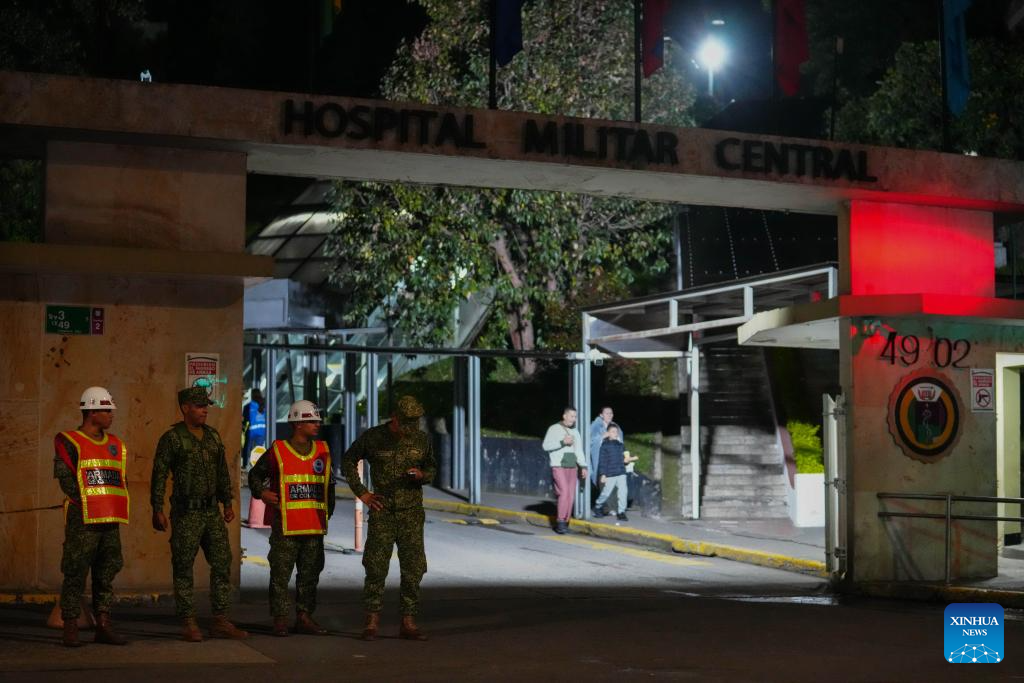 Militares vigilan el Hospital Militar Central donde algunos de los heridos del accidente de un avión Hércules del Ejército Nacional colombiano reciben atención médica, en la ciudad de Bogotá, capital de Colombia, el 23 de marzo de 2026. Ascendió a 66 el número de personas que perdieron la vida el lunes en el accidente de un avión Hércules del Ejército Nacional de Colombia, en el departamento de Putumayo, según la cadena colombiana Caracol Radio citando a fuentes oficiales. (Xinhua/Andrés Moreno)