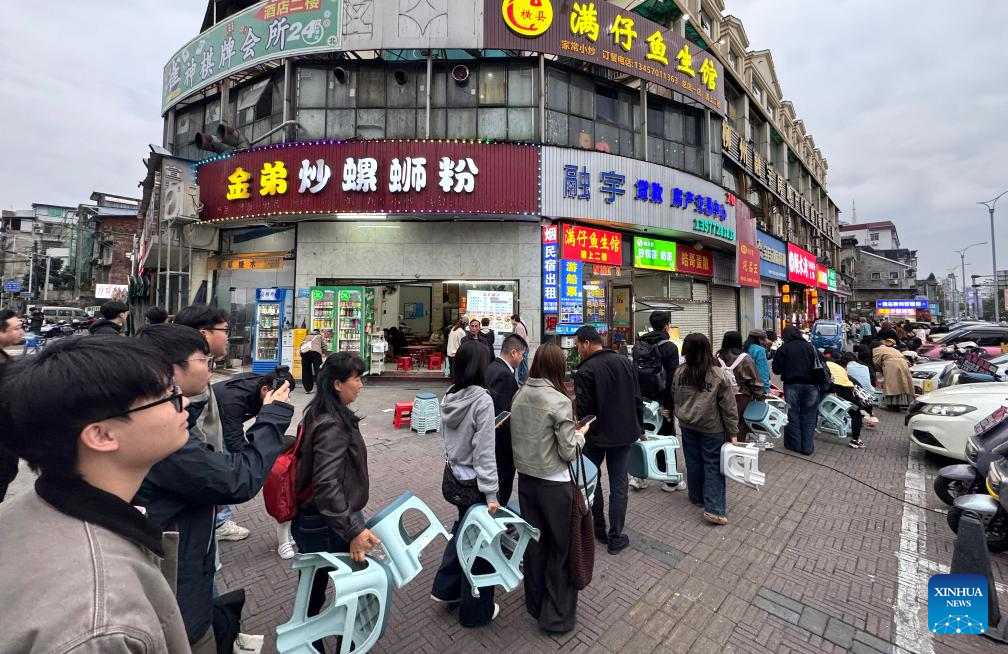 NANNING, 24 marzo, 2026 (Xinhua) -- Imagen del 10 de marzo de 2026 de personas formándose para comprar Luosifen salteado en una tienda, en la ciudad de Liuzhou, en la región autónoma de la etnia zhuang de Guangxi, en el sur de China. Conocido por su sabor único y rico, el Luosifen, un plato tradicional chino de fideos de arroz de Liuzhou, ha ganado gran popularidad. (Xinhua/Zheng Changhao)
