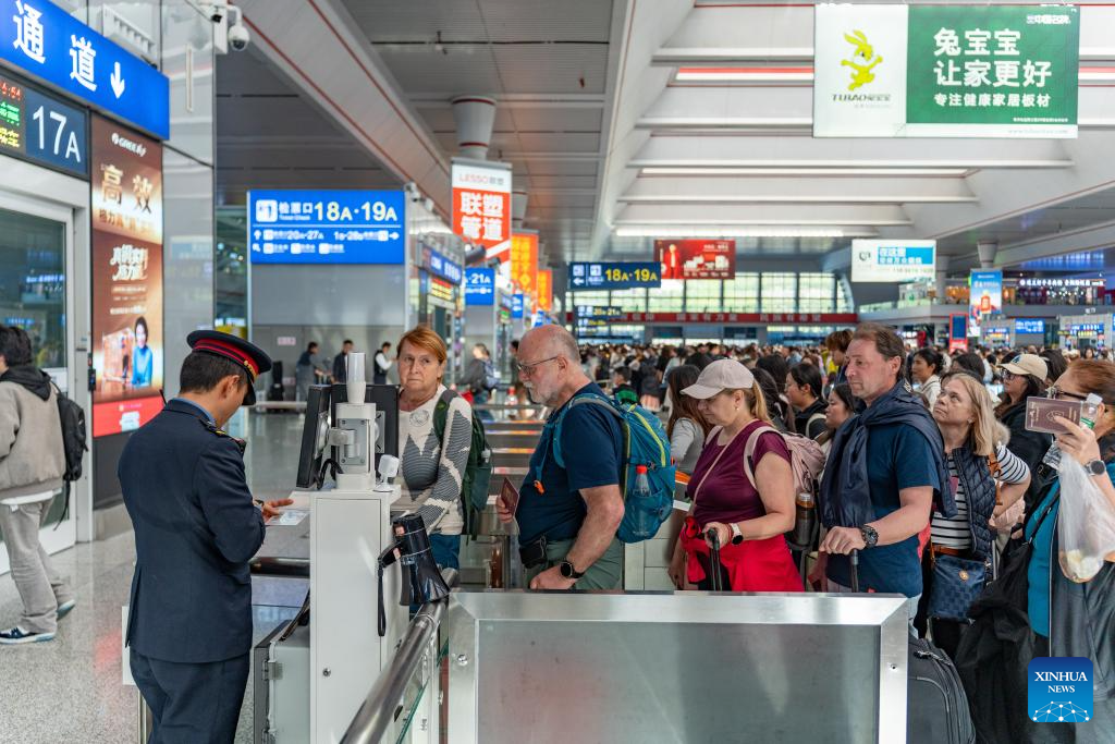 BEIJING, 3 abril, 2026 (Xinhua) -- Pasajeros extranjeros se registran en la Estación del Ferrocarril del Norte de Guiyang, en Guiyang, en la provincia de Guizhou, en el suroeste de China, el 3 de abril de 2026. Se prevé que entre el viernes y el próximo martes, durante la temporada alta con motivo del feriado del Festival Qingming, se registren en China 90,5 millones de viajes de pasajeros en tren, según el Grupo Estatal de Ferrocarriles de China (China State Railway Group Co., Ltd.). De acuerdo con el operador ferroviario nacional, se espera un promedio diario de 18,1 millones de desplazamientos a lo largo de los cinco días de este período viajero, en tanto que el sábado se alcanzaría el pico de ellos, con un total de 21,2 millones para la jornada. (Xinhua/Long Jianrui)