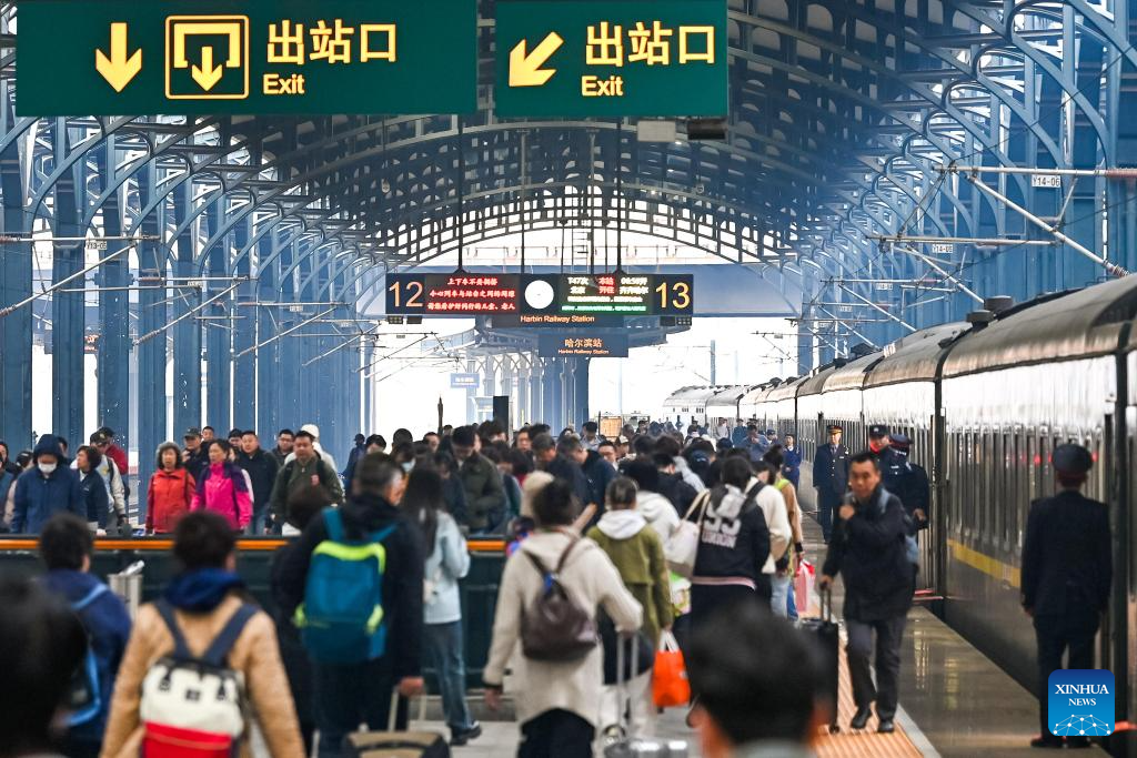 BEIJING, 3 abril, 2026 (Xinhua) -- Pasajeros son vistos en un andén de la Estación del Ferrocarril de Harbin, en Harbin, en la provincia de Heilongjiang, en el noreste de China, el 3 de abril de 2026. Se prevé que entre el viernes y el próximo martes, durante la temporada alta con motivo del feriado del Festival Qingming, se registren en China 90,5 millones de viajes de pasajeros en tren, según el Grupo Estatal de Ferrocarriles de China (China State Railway Group Co., Ltd.). De acuerdo con el operador ferroviario nacional, se espera un promedio diario de 18,1 millones de desplazamientos a lo largo de los cinco días de este período viajero, en tanto que el sábado se alcanzaría el pico de ellos, con un total de 21,2 millones para la jornada. (Xinhua/Yuan Yong)
