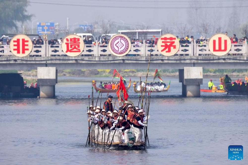 XINGHUA, 5 abril, 2026 (Xinhua) -- Imagen del 5 de abril de 2026 de botes navegando durante la feria de botes de Maoshan, en la ciudad de Xinghua, en la provincia de Jiangsu, en el este de China. La feria anual de botes de Maoshan en Xinghua se celebró el domingo. El evento fue inscrito como patrimonio cultural inmaterial nacional en 2014. (Xinhua/Gu Jihon)