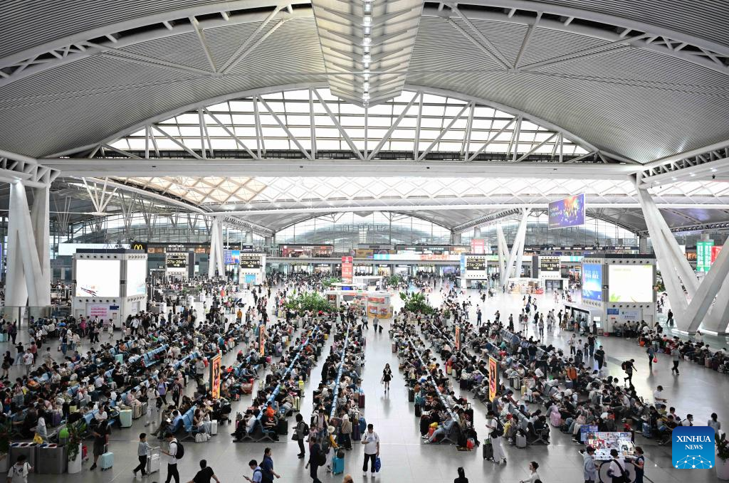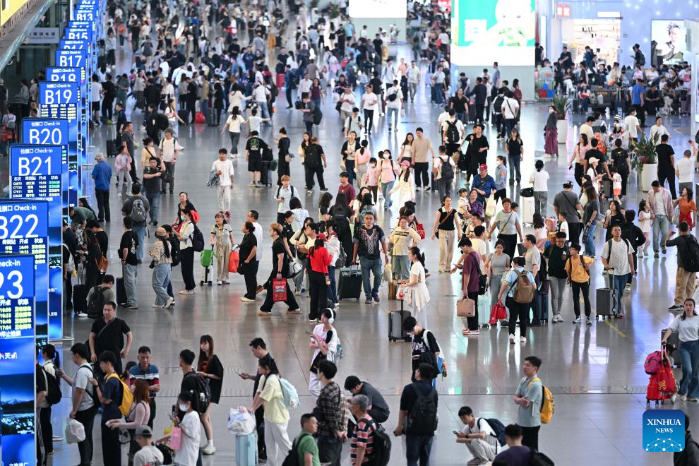 Pasajeros son vistos en la sala de espera de la Estación de Ferrocarril del Sur de Guangzhou, en la ciudad de Guangzhou, en la provincia de Guangdong, en el sur de China, el 6 de abril de 2026. Un estimado de 845,38 millones de viajes de pasajeros tuvieron lugar en toda China durante las vacaciones de tres días del Festival Qingming, lo que representa un aumento interanual del 6 por ciento, informaron el lunes las autoridades de transporte. (Xinhua/Deng Hua)
