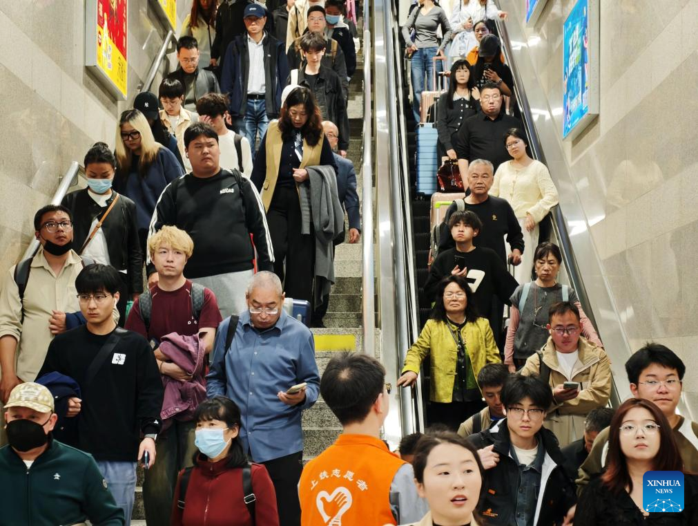 Pasajeros son vistos en la Estación de Ferrocarril Hongqiao de Shanghai, en Shanghai, en el este de China, el 6 de abril de 2026. Un estimado de 845,38 millones de viajes de pasajeros tuvieron lugar en toda China durante el feriado de tres días del Festival Qingming, lo que representa un aumento interanual del 6 por ciento, informaron el lunes las autoridades de transporte. (Xinhua/Xing Guangli)