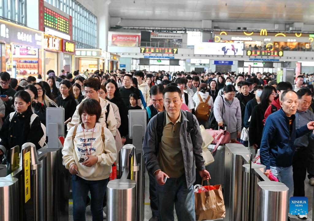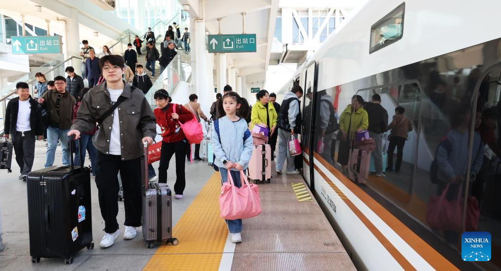 Pasajeros caminan en el andén de la Estación de Ferrocarril de Nanjing, en la ciudad de Nanjing, en la provincia de Jiangsu, en el este de China, el 6 de abril de 2026. Un estimado de 845,38 millones de viajes de pasajeros tuvieron lugar en toda China durante las vacaciones de tres días del Festival Qingming, lo que representa un aumento interanual del 6 por ciento, informaron el lunes las autoridades de transporte. (Xinhua/Shi Jun)