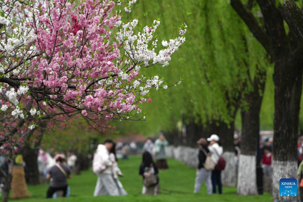 HANGZHOU, 2 abril, 2026 (Xinhua) -- Turistas visitan el área escénica del Lago Oeste, en Hangzhou, en la provincia de Zhejiang, en el este de China, el 2 de abril de 2026. Recientemente, el Lago Oeste en Hangzhou se ha engalanado con melocotoneros en flor y sauces frondosos, mostrando brillantes colores primaverales que atraen a multitudes de visitantes. (Xinhua/Huang Zongzhi)