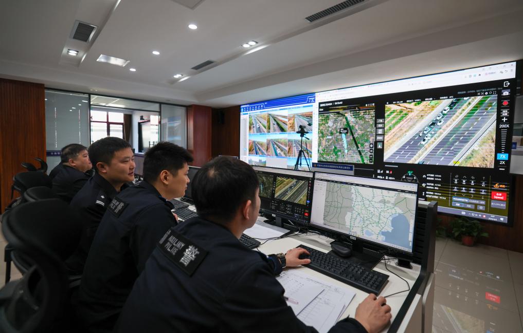 BEIJING, 6 abril, 2026 (Xinhua) -- Empleados responden a un accidente por medio de un sistema de transmisión de video con dron, en la brigada de autopistas de la oficina de gestión de tráfico, en Tianjin, en el norte de China, el 6 de abril de 2026. Un estimado de 778,45 millones de viajes por carretera tuvieron lugar en toda China durante las vacaciones de tres días del Festival Qingming, aumentando un 5,8 por ciento respecto al mismo período del año pasado, de acuerdo con el Ministerio de Transporte. (Xinhua/Sun Fanyue)