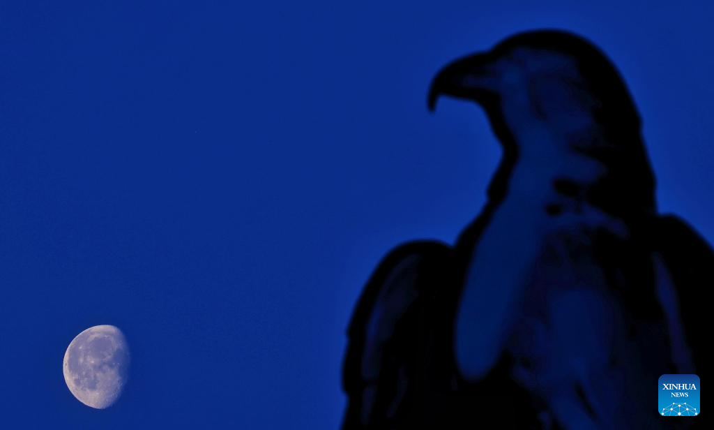 HARBIN, 7 abril, 2026 (Xinhua) -- Imagen del 7 de abril de 2026 de Antares arriba de la luna sobre la ciudad de Daqing, en la provincia de Heilongjiang, en el noreste de China. Conocida por su llamativo resplandor rojo, Antares es la estrella más brillante de la constelación de Escorpio. (Xinhua/Liu Wei)