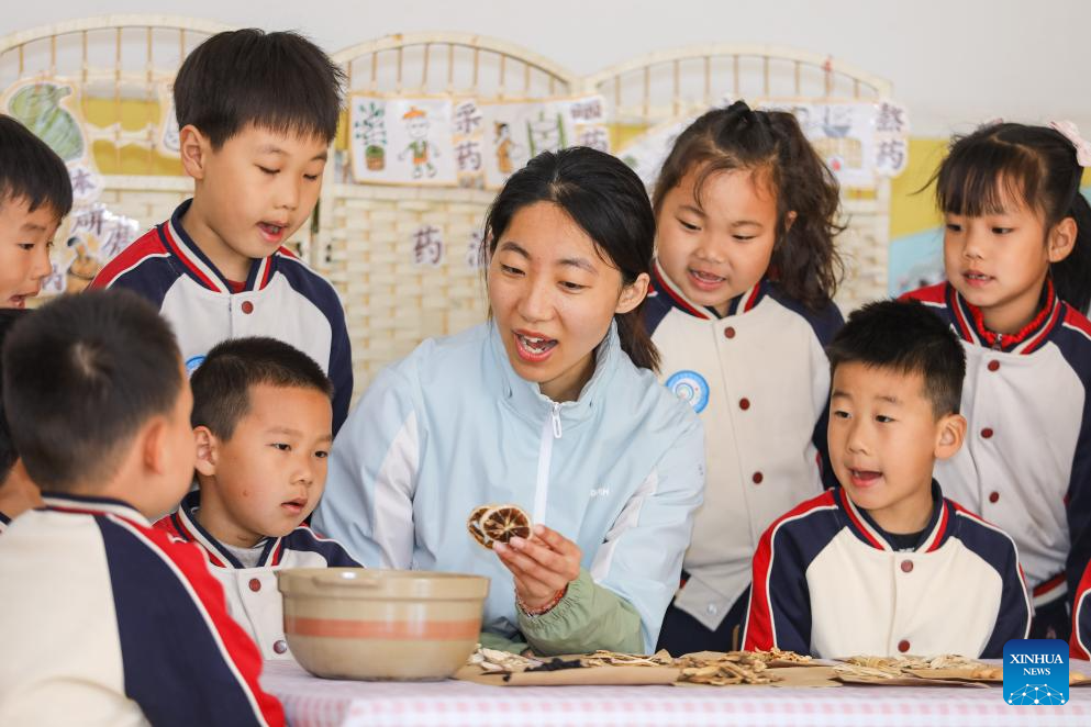BEIJING, 7 abril, 2026 (Xinhua) -- Una profesora enseña a los niños a reconocer hierbas medicinales tradicionales chinas en un jardín de infantes, en Qingdao, en la provincia de Shandong, en el este de China, el 7 de abril de 2026. El Día Mundial de la Salud se celebra anualmente el 7 de abril, fecha que conmemora el aniversario de la fundación de la Organización Mundial de la Salud y crea conciencia sobre los problemas de salud globales más apremiantes. (Xinhua/Zhang Ying)