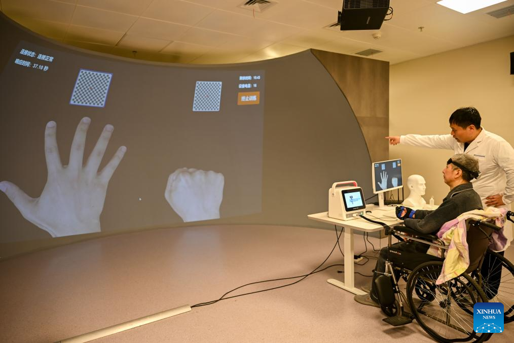 BEIJING, 7 abril, 2026 (Xinhua) -- Un médico guía a un paciente a realizar un entrenamiento de rehabilitación mediante una interfaz cerebro-computadora en un hospital, en Guiyang, en la provincia de Guizhou, en el suroeste de China, el 7 de abril de 2026. El Día Mundial de la Salud se celebra anualmente el 7 de abril, fecha que conmemora el aniversario de la fundación de la Organización Mundial de la Salud y crea conciencia sobre los problemas de salud globales más apremiantes. (Xinhua/Yuan Fuhong)