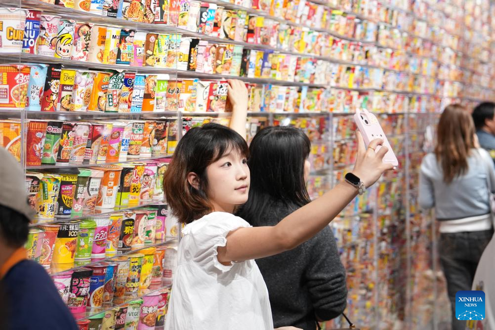 CHANGSHA, 17 abril, 2026 (Xinhua) -- Una persona se toma una fotografía en una gran tienda de bocadillos, en Changsha, en la provincia de Hunan, en el centro de China, el 17 de abril de 2026. Una tienda de gran tamaño de bocadillos con una superficie de 12.000 metros cuadrados abrió en Changsha el viernes. Con más de 6.500 marcas y más de 35.000 productos, el establecimiento ofrece a los consumidores una experiencia de exploración que integra compras, interacción en redes sociales y actividades interactivas. (Xinhua/Chen Zhenhai)