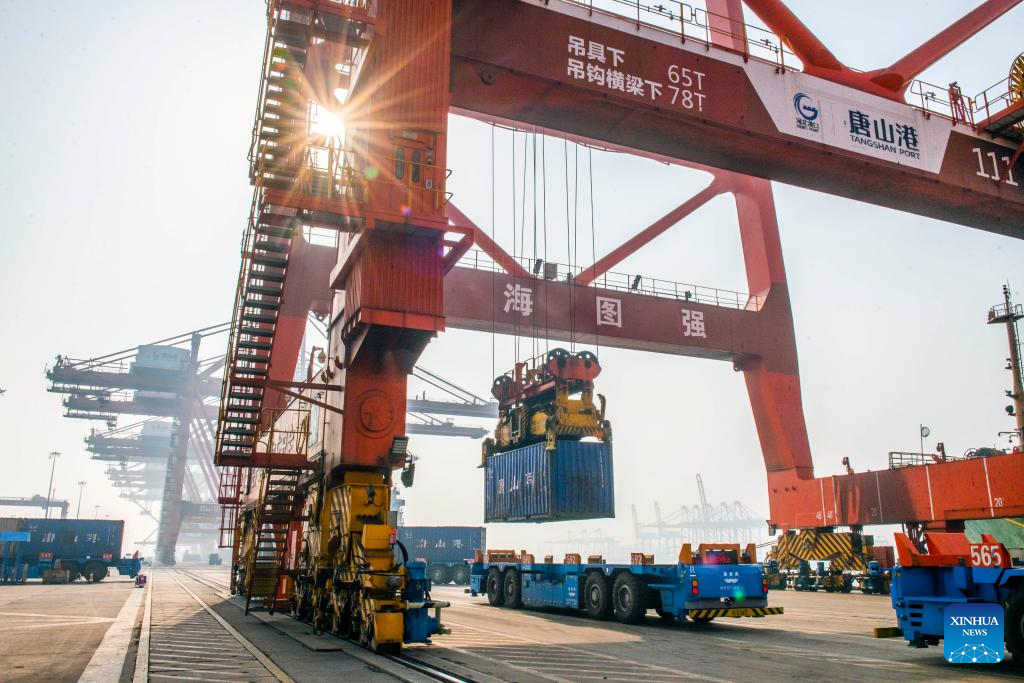 TANGSHAN, 18 abril, 2026 (Xinhua) -- Imagen del 17 de abril de 2026 de una terminal de contenedores del área de Jingtang del puerto de Tangshan, en Tangshan, en la provincia de Hebei, en el norte de China. De acuerdo a las autoridades, el volumen de carga del puerto de Tangshan alcanzó los 215,48 millones de toneladas en el primer trimestre de 2026, lo que representa un aumento interanual del 3,67 por ciento. (Xinhua/Liu Mancang)