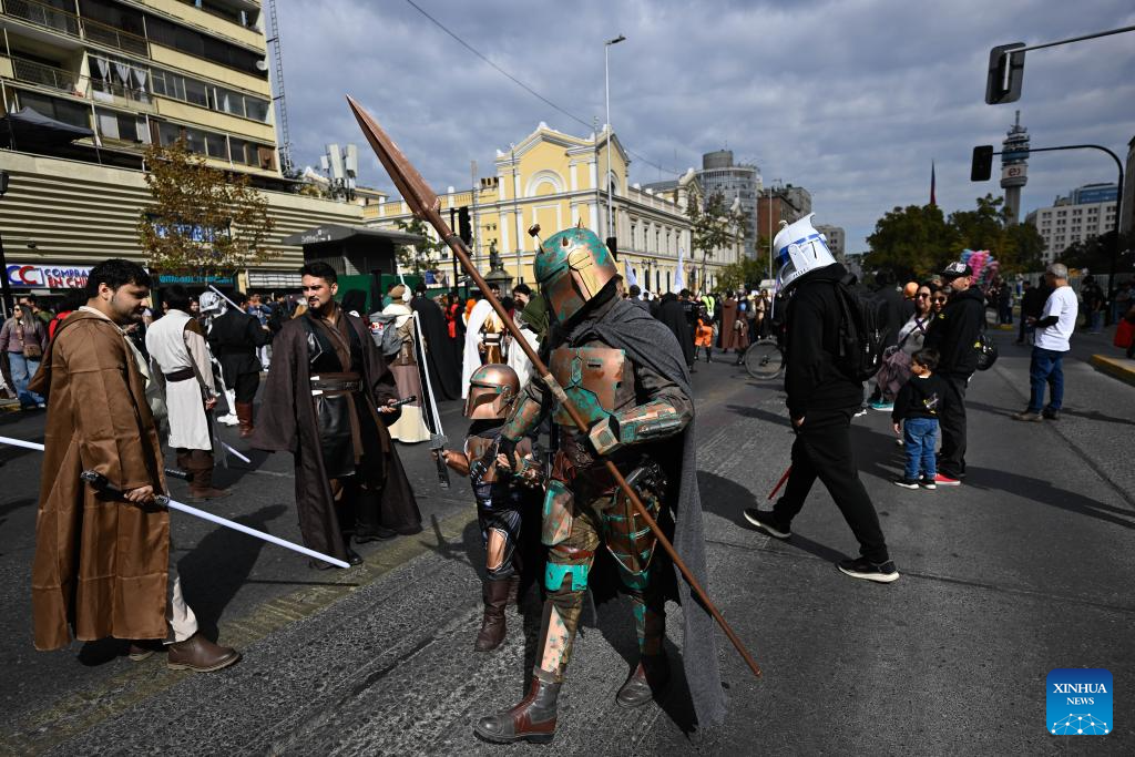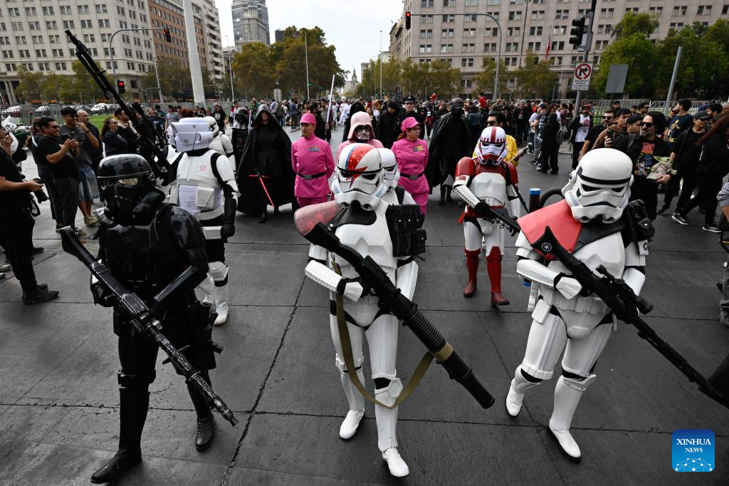 SANTIAGO, 18 abril, 2026 (Xinhua) -- Fanáticos de la saga de Star Wars participan en el Desfile de las Galaxias 2026, en Santiago, capital de Chile, el 18 de abril de 2026. (Xinhua/Jorge Villegas)
