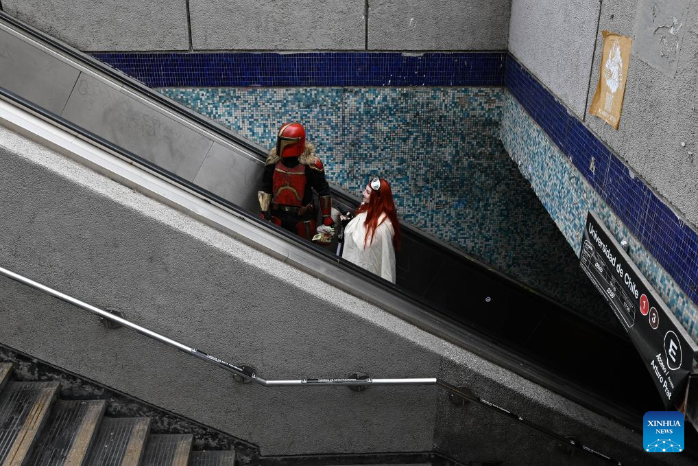 SANTIAGO, 18 abril, 2026 (Xinhua) -- Fanáticos de la saga de Star Wars salen de una estación de metro para participar en el Desfile de las Galaxias 2026, en Santiago, capital de Chile, el 18 de abril de 2026. (Xinhua/Jorge Villegas)